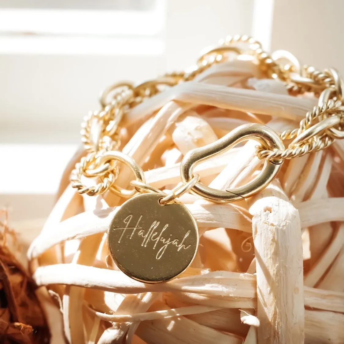 ☆Amen/Hallelujah圓牌手鍊(螺旋粗款)